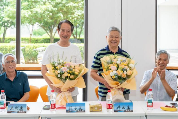 座谈会上,同学们向班主任许云生老师和辅导员陈永昊老师送上鲜花和美好祝福。现场特别展示了班级同学为本次返校活动创作的十余篇原创诗歌作品,字里行间洋溢着对恩师、同窗和母校的深厚情谊。班主任许云生深情寄语同学们保重身体,守护好家庭的和美安康。辅导员陈永昊分享了自己的工作与人生感悟,与同学们共同追忆往昔相处的美好时光。8202班班长、衢州校友会会长徐朝金代表全班同学表达了对母校和恩师的感激之情,并表示会一如既往地关心和支持母校发展。在场同学纷纷发言,畅叙同窗情谊,感念母校培育之恩。