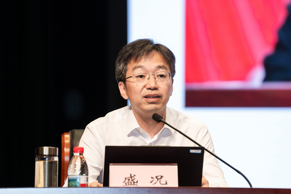 副校长(主持行政日常工作)盛况作了题为《生态重构拓新局 数智赋能谱新篇 以高质量人才培养体系支撑高水平师范大学建设》的专题报告。他从生态重构、内涵解析、现实困局、破解路径四个方面,分析了学校高质量人才培养体系建设的现状和方向。